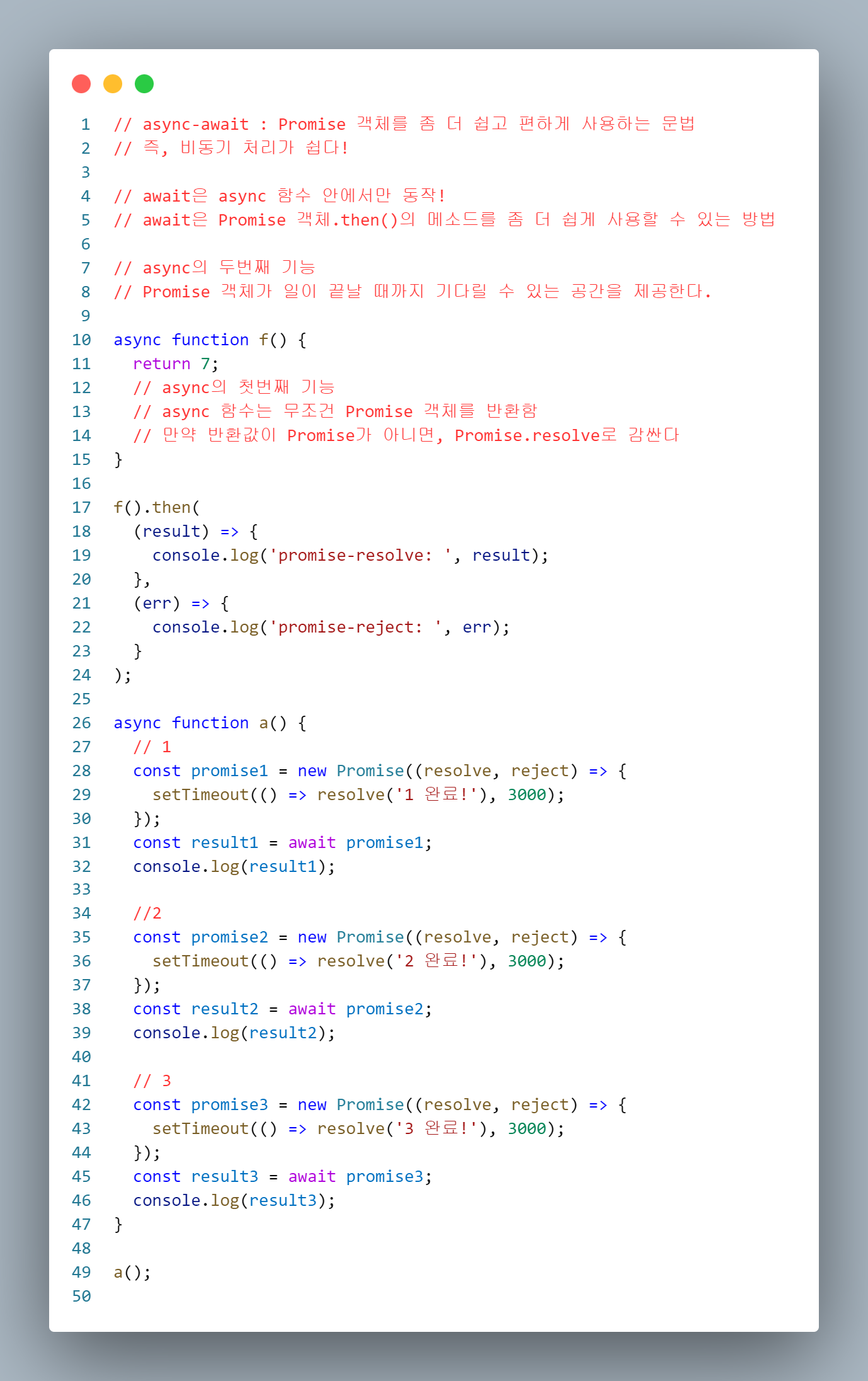 값이 나오는 시간을 기다리지않고 다음코드를 바로 실행함